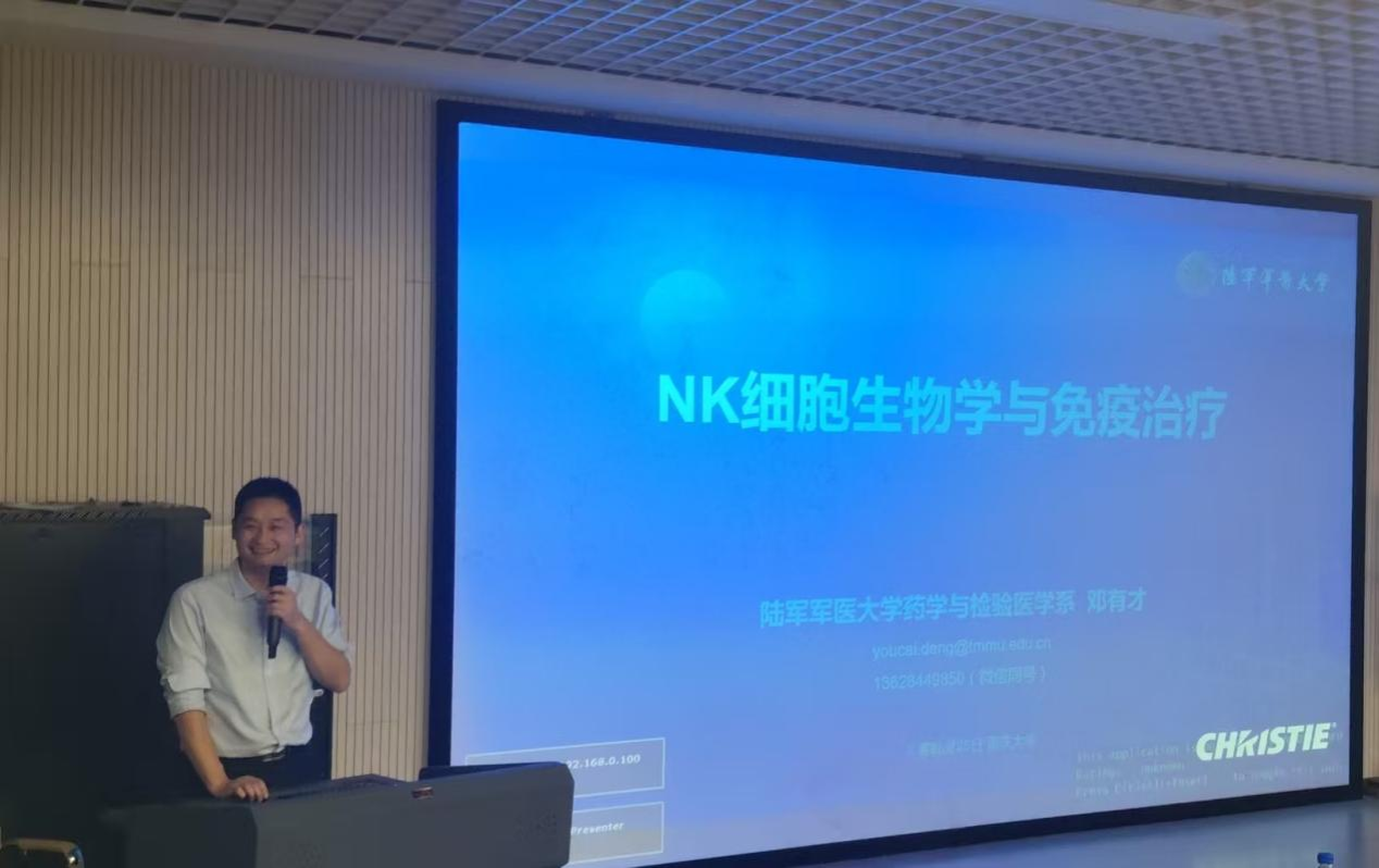 邀请,陆军军医大学药学与检验医学系邓有才教授出席工程学部主办的工程科学前沿讲坛,在理科楼010会议室作了题为 “NK 细胞生物学与免疫治疗” 的学术讲座。报告由性爱直播